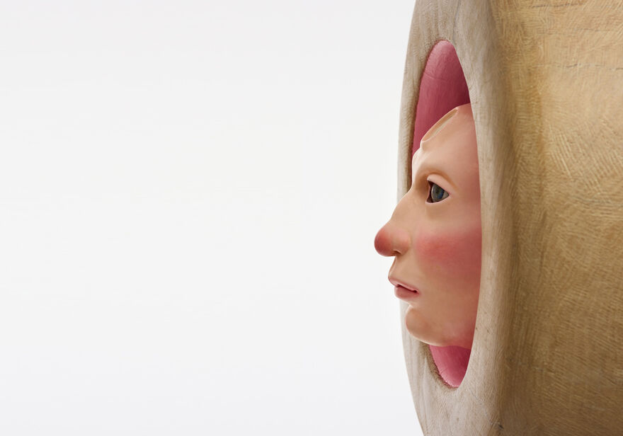 'Doorway Guardians' is a series of three large woodcarvings by Whiles. They combine the imagery and culture of British seaside destinations with the media and methods of sacred painted medieval carvings, while echoing the artist’s memories of molded-plastic charity collection boxes of the 1960s and ’70s.