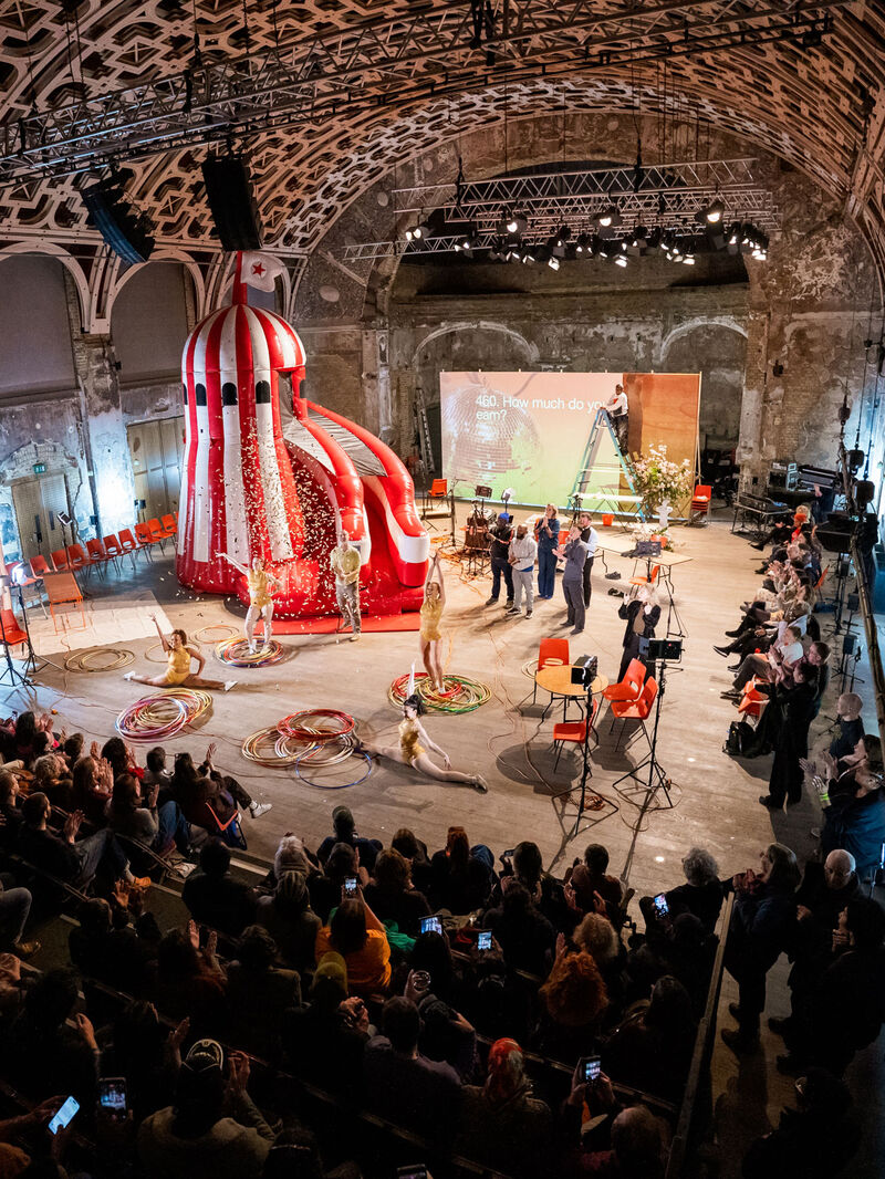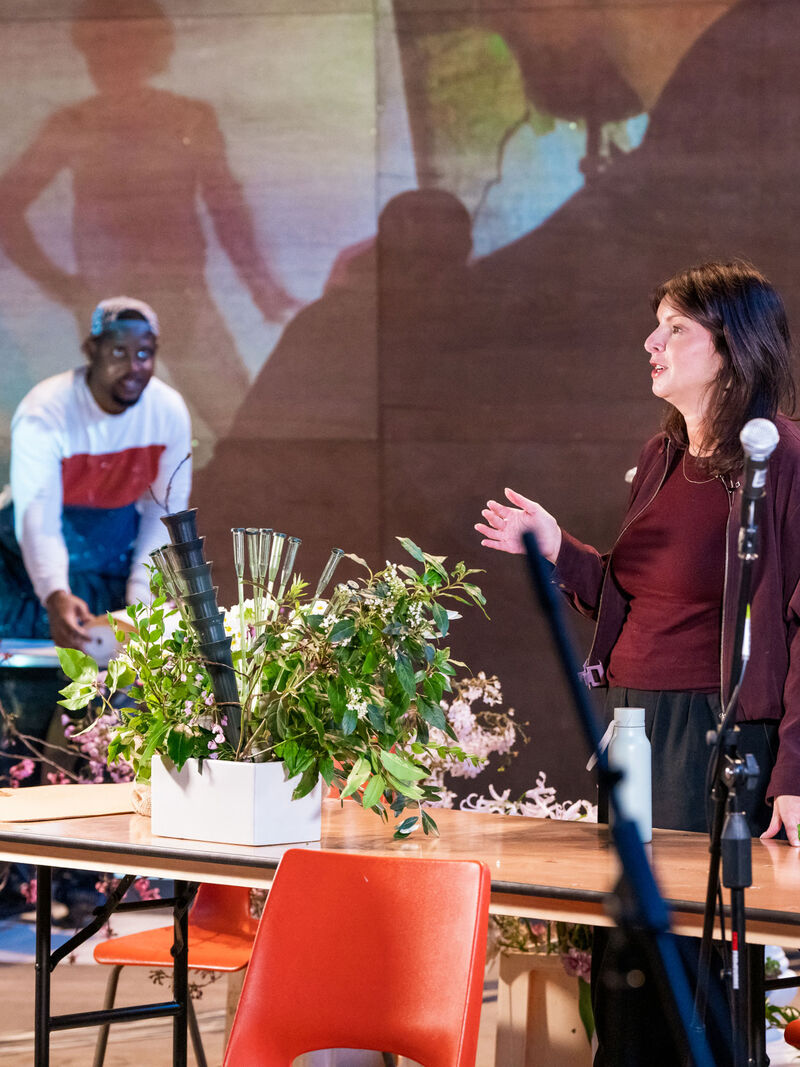 The performance roved between quiet dailiness - a butcher jointing a row of chickens, a painter and decorator wallpapering, and arresting spectacle - a parade of gymnasts, confetti canons, a giant inflatable helter skelter. With so much wonder and beauty unfolding at once across the stage it felt like the natural culmination of the takeover; though that might not be how Quarantine would see it. Instead, each piece in A Public Address was presented intentionally without hierarchy. A geographical and human ‘zooming in’, that shifted between the public and the private, the epic and the intimate.
