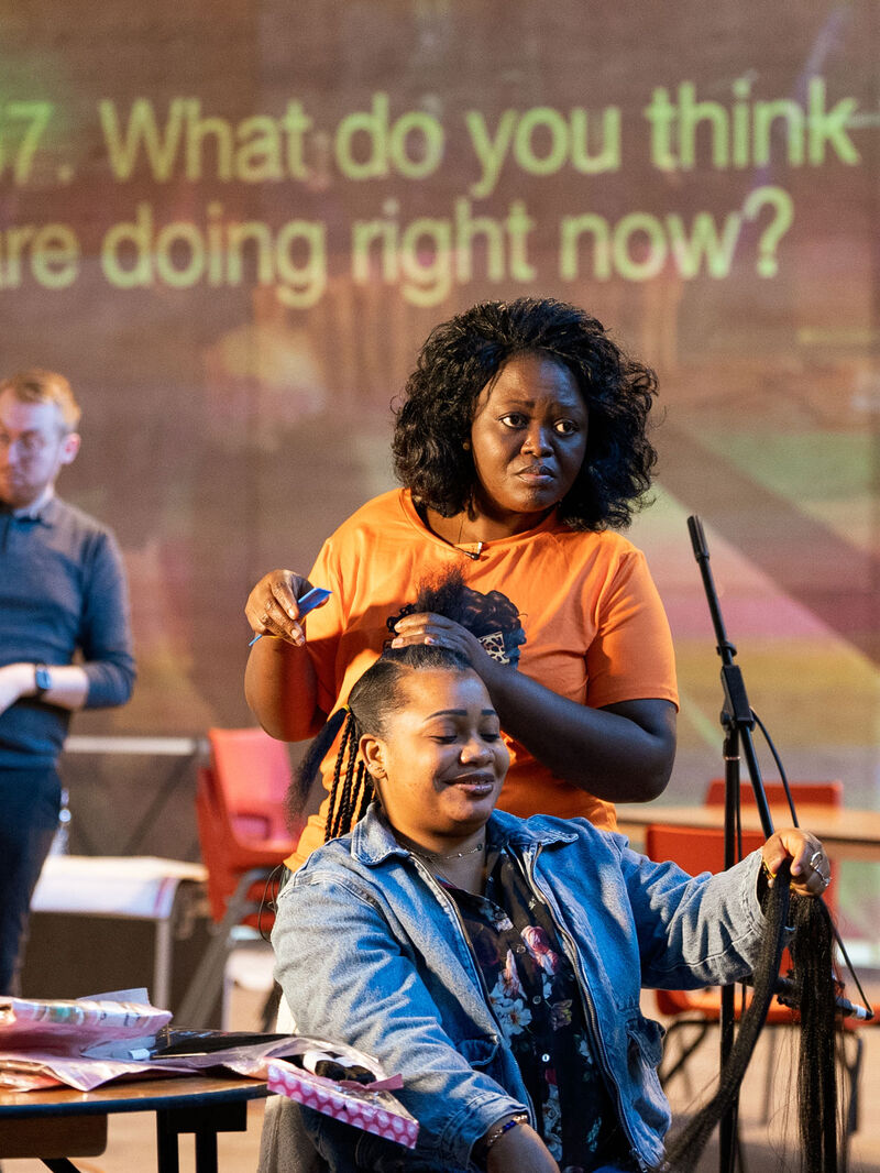 The day after the speeches on the balcony in March 2026, the 12 speakers returned to BAC for The Rooms, where the public joined them for conversations about what they had declared the night before.. Why I am and why I am not in its entirety is a portrait of people and place that examines the relationship between our public and private selves, who we are and who we proclaim to be.