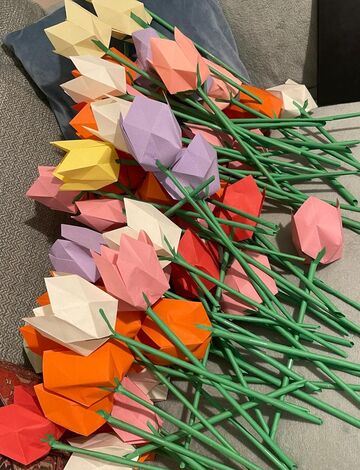 This ethos of using art for social dialogue and empowerment is further demonstrated in hands-on community workshops. For instance, they led a library workshop creating origami tulips with empowering messages for a White Ribbon campaign, specifically addressing violence against women and girls. This project aimed to clarify that such violence finds no backing in religious texts like the Holy Qur'an and Ahadith/Traditions of the Prophet Muhammad, but stems from individual ignorance, using art to affirm support for survivors and promote a message of respect.