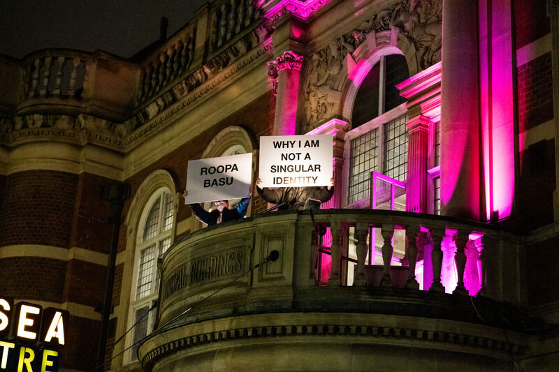 It was neither, technically, of these things but a performance – Why I am and why I am not – a co-production between BAC and award-winning Manchester theatre collective Quarantine. The prompt for Why I am and why I am not was British philosopher Bertrand Russell’s famously provocative speech ‘Why I am not a Christian…’, given at Battersea Town Hall in 1927, decades before the building became an arts centre in 1974, and 99 years to the day that the speakers took to the balcony. The performance formed part of Quarantine’s four-week takeover of BAC, A Public Address, part of Welcome to Wandsworth - The Mayor’s London Borough of Culture 2025.