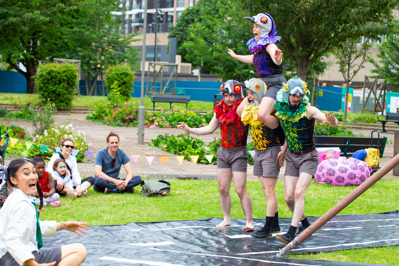 Get ready to encounter roaming circus and street theatre from Wandsworth Arts Fringe family favourites Brainfools, Autin Dance and Jellyfish Theatre. Balance is the latest original work from Brainfools who expertly fuse dynamic circus arts with imaginative storytelling. Jellyfish Theatre roll up with their joyfully interactive family show – The Dragon Whisperer - a tale of friendship, food and dragons packed with puppetry, laughter and original live music. The Giant Wheel, by Autin Dance Theatre, features a 12-foot tall Giant Wheel powered by five street artists in a celebration of community and togetherness.