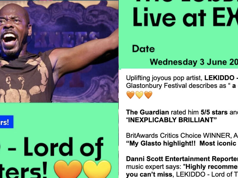 5/5 stars Guardian rated artist, LEKIDDO - Lord of The Lobsters! is what Glastonbury describes as